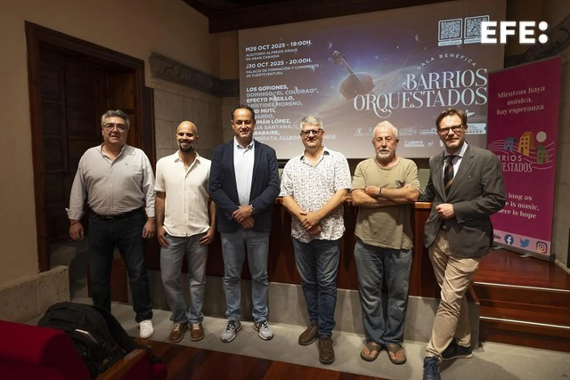 En representación de Los Gofiones, su presidente, José Afonso, ha agradecido la oportunidad de formar parte del cartel de la gala de Gran Canaria, al tiempo que ha recordado que no es la primera vez que colabora con este proyecto de «integración social que tanta falta hace en los barrios, donde la música ayuda a muchos chicos a ver el horizonte de otra manera». EFE