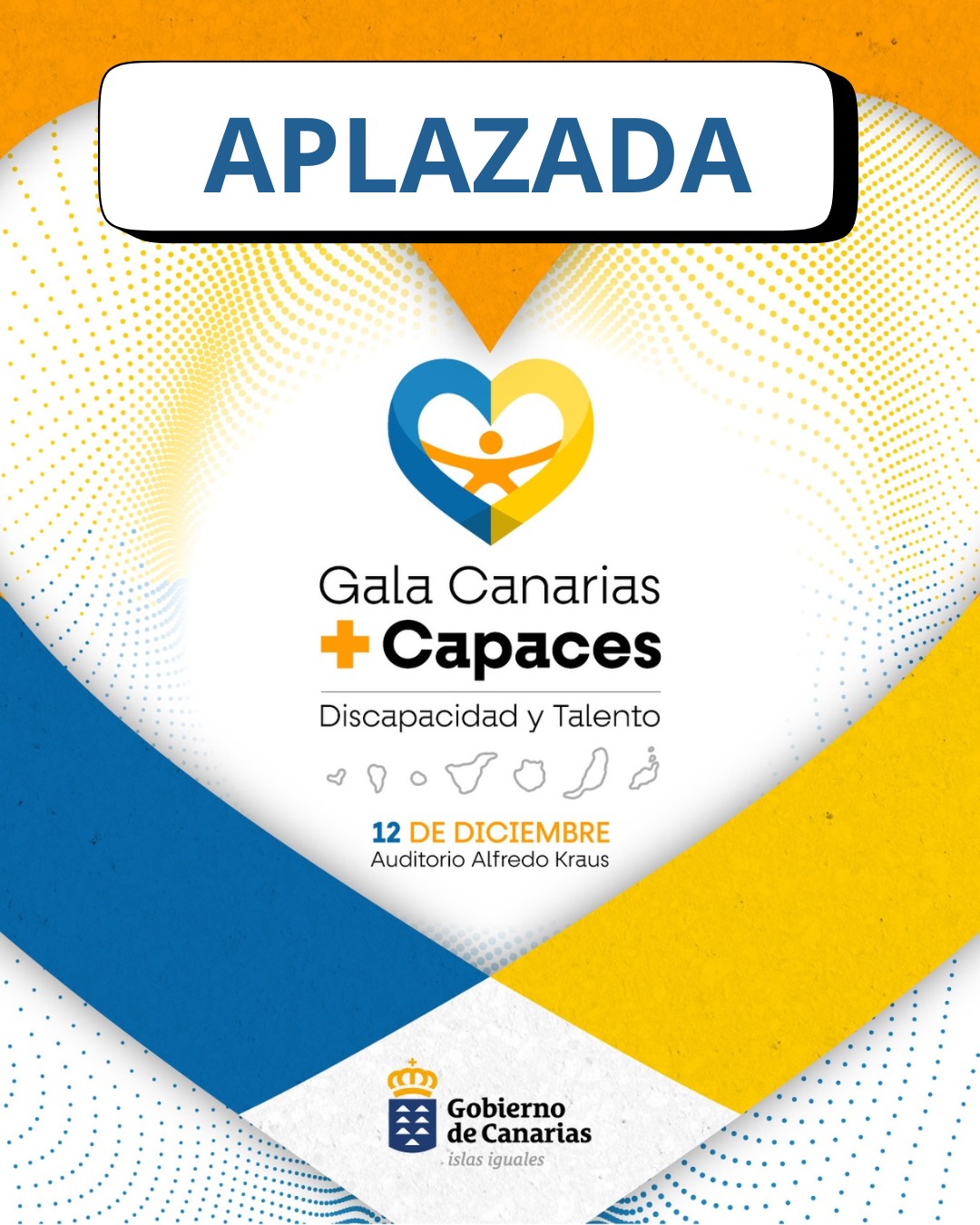 La Dirección General de Discapacidad de la Consejería de Bienestar Social, Igualdad, Juventud, Infancia y Familias ha decidido aplazar la Gala +Capaces Canarias: discapacidad y talento prevista para las 18:00 horas de hoy (viernes 12) en el Auditorio Alfredo Kraus (Gran Canaria) por motivos de seguridad. La organización tenía prevista la asistencia de 600 personas a la primera edición de esta iniciativa que tiene por objeto visibilizar, reconocer y poner en valor la aportación de las personas con discapacidad y de las entidades que trabajan en favor de sus derechos en el Archipiélago. El acto se celebrará el próximo 21 de enero, a las 17:30 horas.