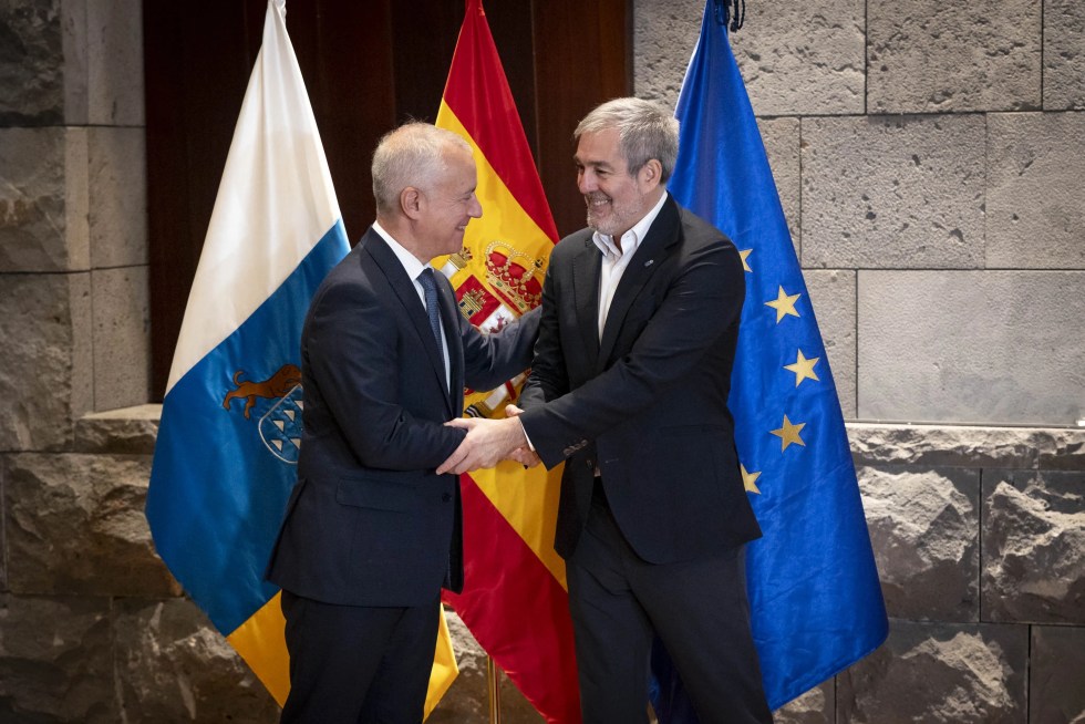 Santa Cruz de Tenerife (EFE).- El presidente de Canarias, Fernando Clavijo, ha mantenido este jueves una reunión de trabajo con el presidente de la Fundación eAtlantic y ex lehendakari del Gobierno Vasco, Iñigo Urkullu, con el objetivo de reforzar el papel del archipiélago en el Atlántico medio y consolidar su condición de plataforma europea de conexión con África Occidental.