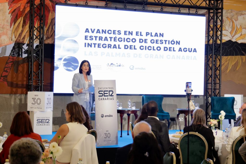 Durante su intervención en el Encuentro SER Canarias ‘Avances y retos del ciclo integral del agua en Las Palmas de Gran Canaria’, Darias resaltó que el plan constituye una “hoja de ruta alineada con la Directiva Marco Europea del Agua y el Plan Hidrológico Insular”. Además, subrayó que la gestión del agua “es uno de los grandes retos de nuestra ciudad y un eje esencial de la transformación urbana hacia un modelo más sostenible y circular”.