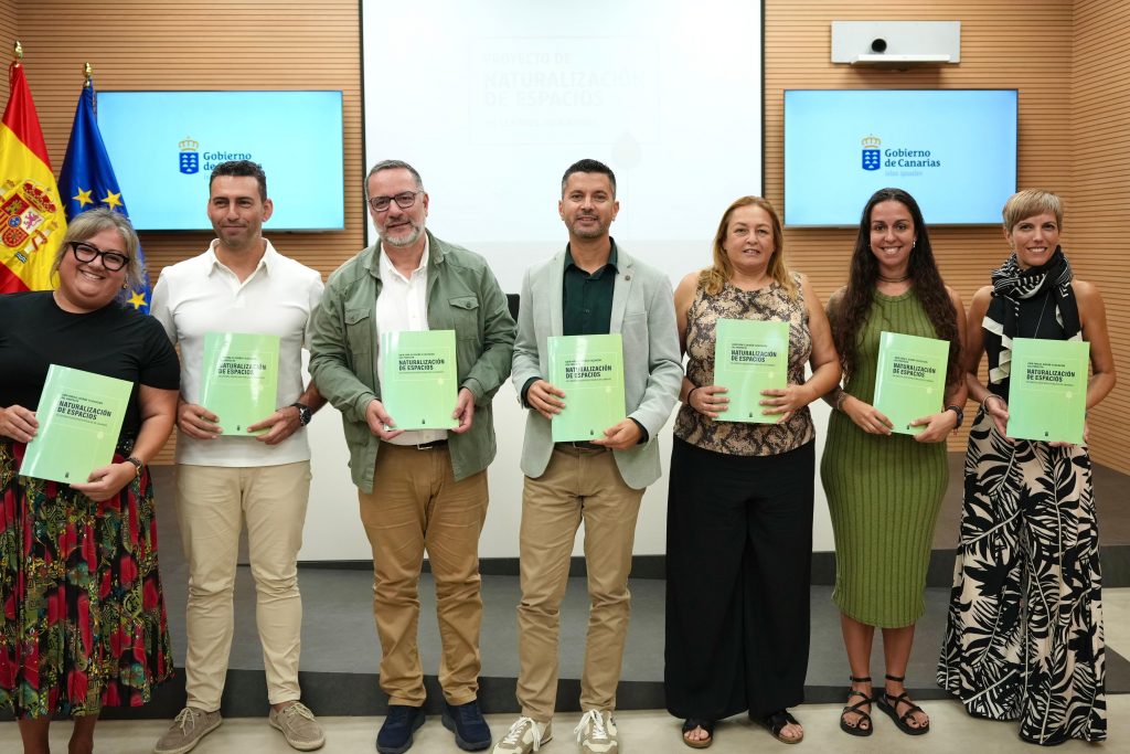 El consejero de Educación, Formación Profesional, Actividad Física y Deportes del Gobierno de Canarias, Poli Suárez, y el director general de Infraestructuras y Equipamientos, Iván González Carro, presentaron este viernes en Santa Cruz de Tenerife el Proyecto de Naturalización de los Centros Educativos de Canarias, una iniciativa pionera en una comunidad autónoma española que busca transformar los patios y entornos escolares de las islas en espacios más verdes, sostenibles y adaptados al cambio climático.