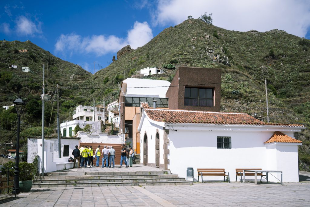 Para llevar a cabo esta intervención, se contrató la redacción del proyecto técnico y la dirección de obra. Durante este proceso, se detectó la necesidad de reforzar las medidas de seguridad iniciales, debido a la compleja ubicación física del inmueble. Aunque esto supuso una demora, se consideró imprescindible para asegurar que los trabajos se realicen bajo las máximas garantías, tanto para la seguridad de trabajadores y residentes como para cumplir con las normativas urbanísticas y los requisitos de la Reserva de la Biosfera del Parque Rural de Anaga.