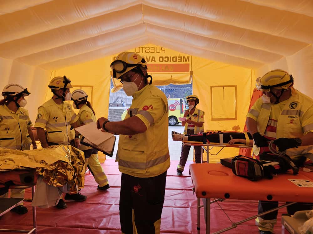 El Servicio de Urgencias Canario (SUC), adscrito a la empresa pública Gestión de Servicios para la Salud y Seguridad (GSC) en Canarias y dependiente de la Consejería de Sanidad, desplegó hoy viernes 26 de septiembre en Garachico un amplio dispositivo sanitario en el marco del simulacro de erupción volcánica EU-Modex’25 organizado por el Cabildo de Tenerife.