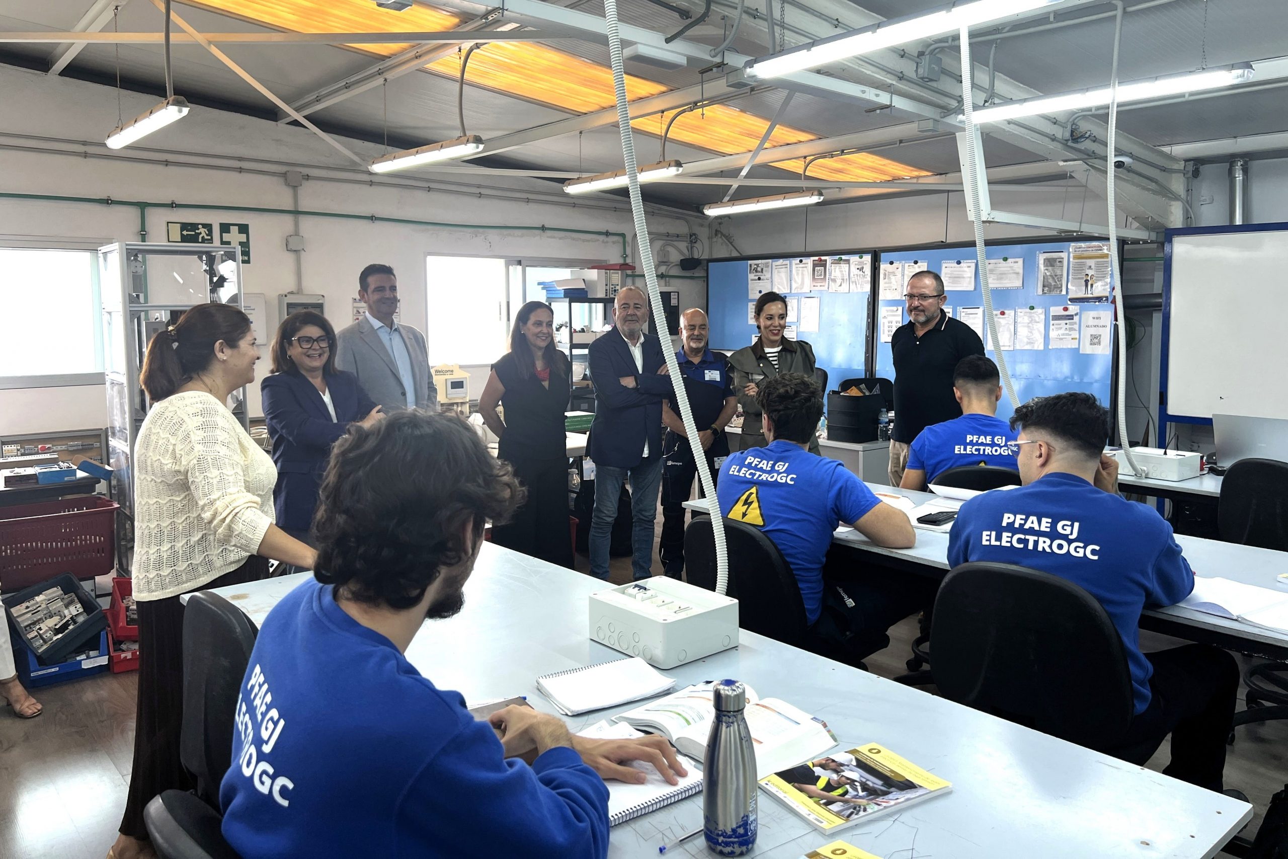 Durante el encuentro, De León y Ortega tuvieron la oportunidad de conocer al alumnado de los Programas de Formación en Alternancia con el Empleo (PFAE) de Garantía Juvenil Metal y Fuego y Electro GC, en los que colabora el SCE. A través de ambos proyectos, un total de treinta estudiantes podrán reforzar sus competencias en los ámbitos de la soldadura con electrodo revestido y del montaje, y mantenimiento de instalaciones eléctricas de baja tensión, respectivamente.