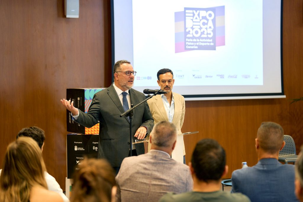 El consejero de Educación, Formación Profesional, Actividad Física y Deportes del Gobierno de Canarias, Poli Suárez, y el vicepresidente del Cabildo de Tenerife, Lope Afonso, presentaron este martes, de forma oficial, ExpoDeca 2025, la Feria de la Actividad Física y del Deporte de Canarias, que tendrá lugar del 2 al 5 de octubre en el Recinto Ferial de Tenerife.