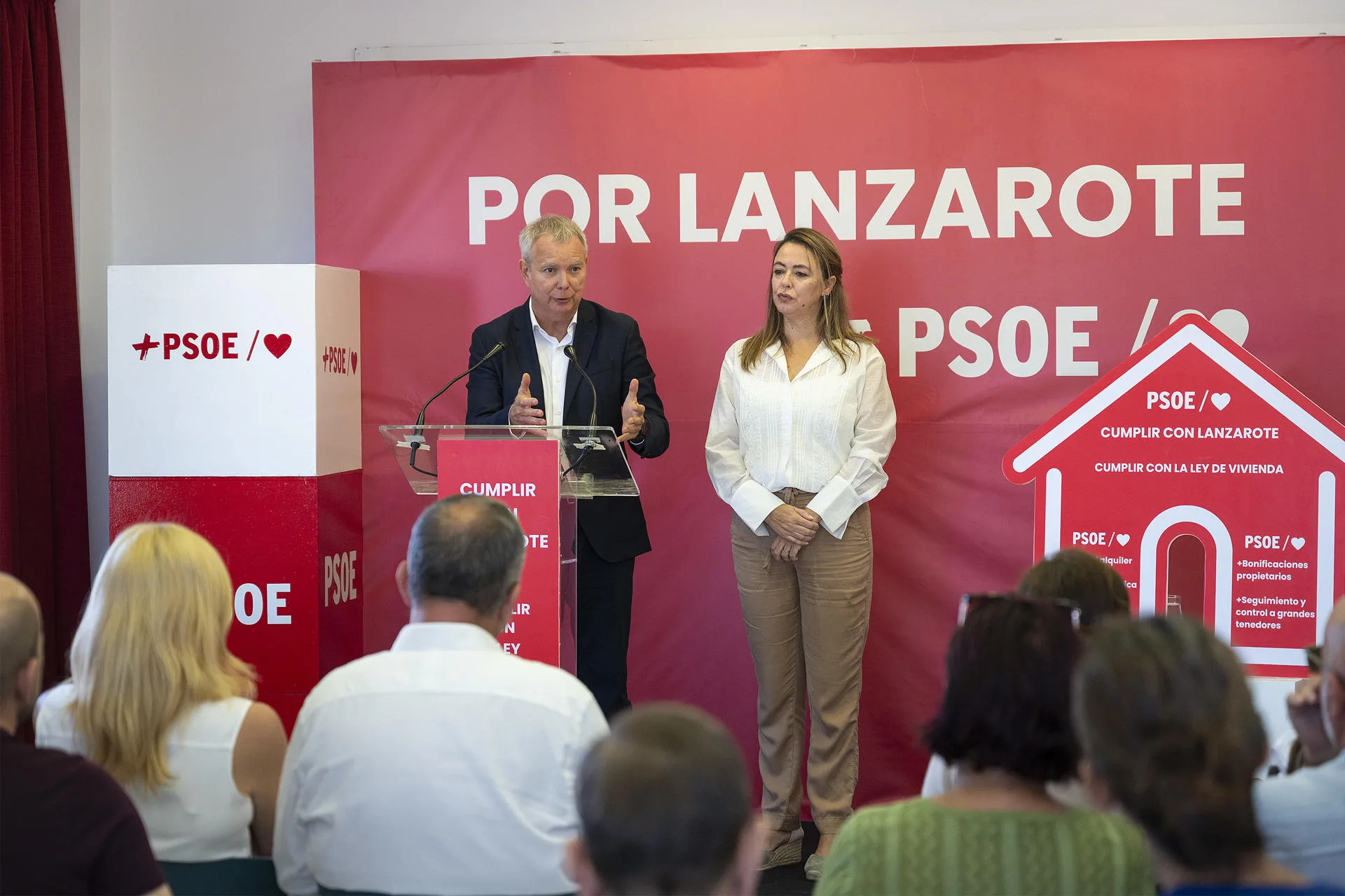 Franquis y la diputada en el Congreso Dolores Corujo han presentado este miércoles en Lanzarote una campaña sobre la Ley de Vivienda y la iniciativa que defenderán los socialistas en el Parlamento canario para que esa ley se aplique en las islas.