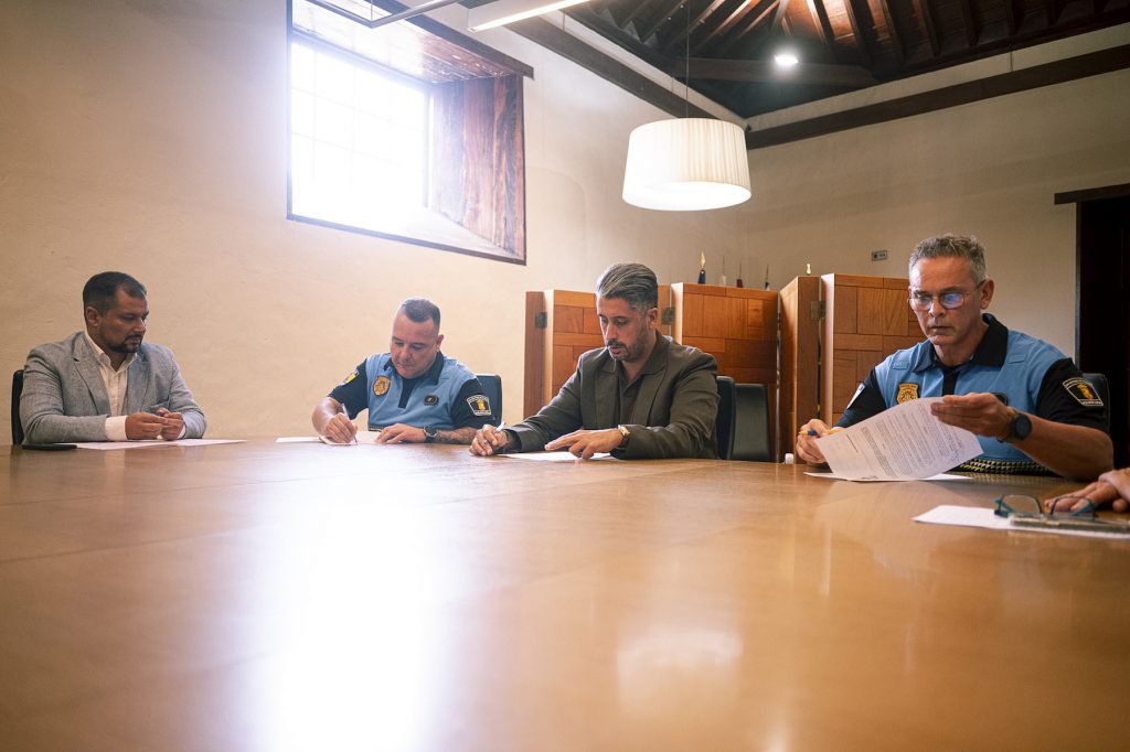 El Ayuntamiento de La Laguna ha renovado la pertenencia a la Unidad Canina de la Policía Local de Laika y Gramo, dos perros adiestrados para la detección de sustancias estupefacientes, que han formado parte de este departamento durante más de nueve años, realizando numerosas intervenciones. El alcalde de La Laguna, Luis Yeray Gutiérrez, firmó recientemente el convenio de colaboración entre el Ayuntamiento y los propietarios de los canes, los agentes Jesús Moreno y David Padilla, para la cesión de uso exclusivo de ambos perros durante un periodo de cuatro años. En la firma del convenio también estuvo presente el concejal de Seguridad Ciudadana, Badel Albelo.