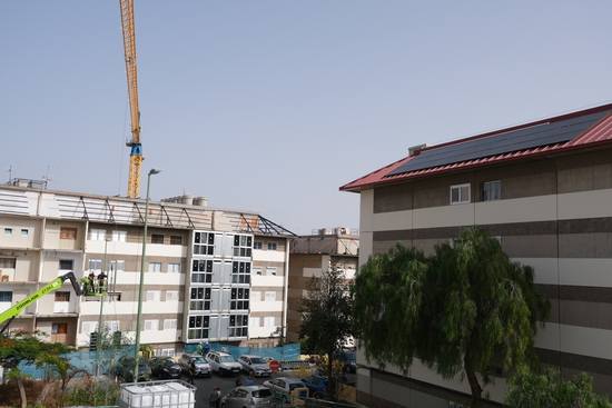 Otra de las mejoras en curso consiste en la aplicación de pinturas térmicas impermeabilizantes y reflectantes en fachadas y cubiertas, con el objetivo de minimizar la absorción de radiación solar. Además, se está renovando toda la instalación eléctrica en las zonas comunes de los edificios.