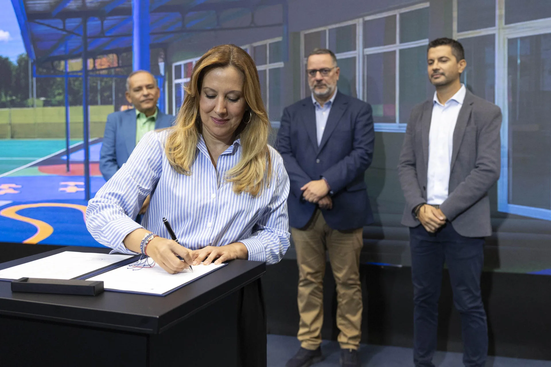La presidenta del Cabildo de Tenerife, Rosa Dávila, y el consejero de Educación del Gobierno de Canarias, Poli Suárez, tras la firma del convenio, han detallado que los trabajos consistirán en la instalación de estructuras ligeras como toldos de vela y pérgolas cubiertas, además de adecuaciones del mobiliario exterior y microclimas que, según datos científicos, pueden reducir la sensación térmica hasta 10 grados.