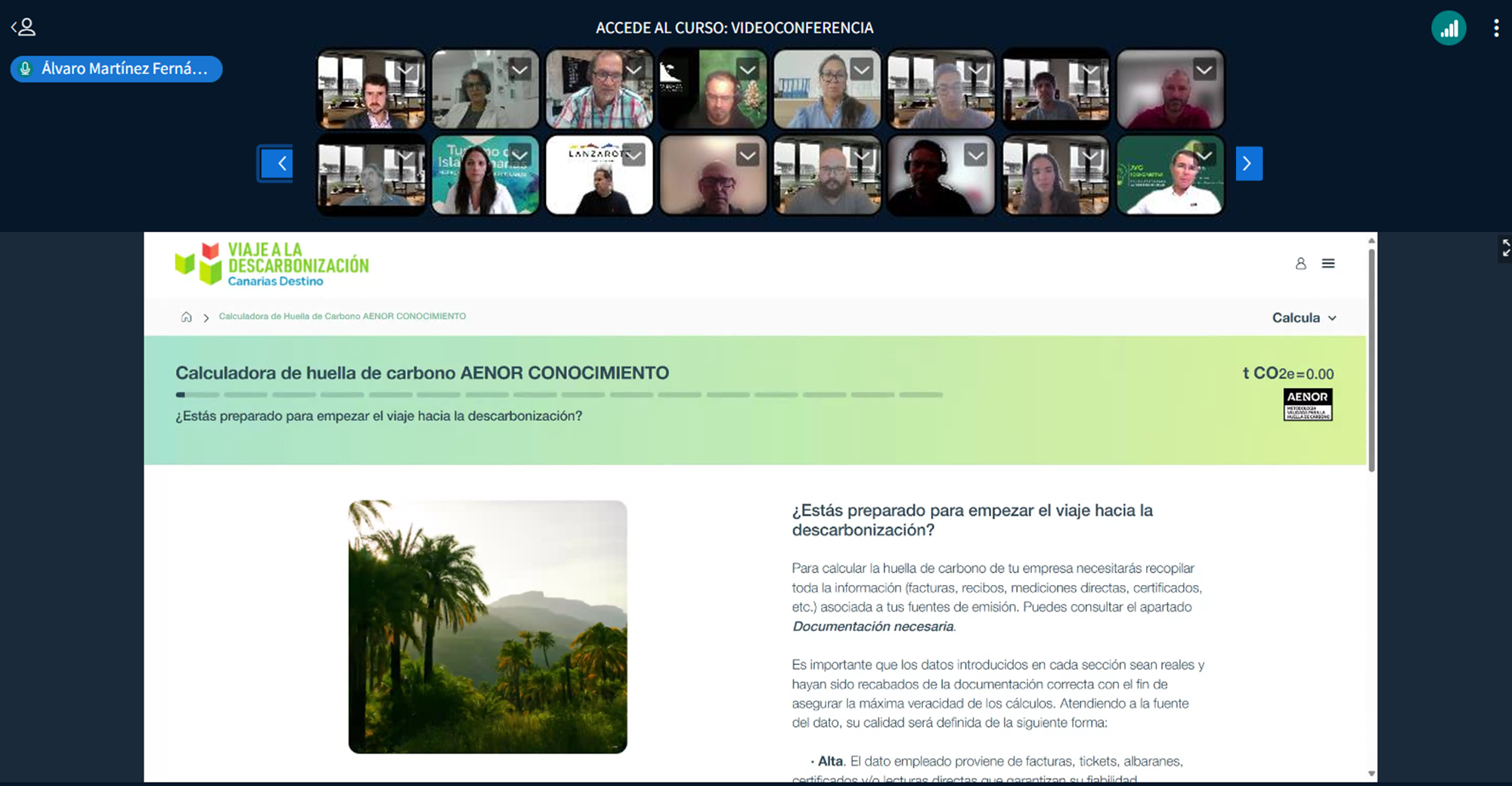 El curso de formación de verificadores de la huella de carbono obtenida a través de ‘Viaje a la descarbonización’ fue impartido por AENOR bajo la modalidad ‘live training’, que combina la interacción en directo con el profesorado y el trabajo colaborativo en grupos virtuales. Esta metodología garantiza un aprendizaje práctico, participativo y adaptado a las necesidades reales del sector turístico.