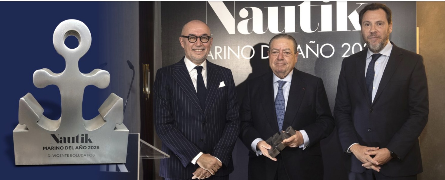 El presidente de Boluda Corporación Marítima, Vicente Boluda Fos, recibió ayer de manos de Óscar Puente, Ministro de Transportes, el galardón “Marino del Año”, otorgado por Forbes España a través de su publicación Nautik Magazine. Un reconocimiento a una incesante trayectoria empresarial dedicada al impulso y desarrollo de la industria marítima internacional.